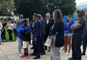 Family and community members and civil rights advocates gathered in Lansing on Friday to call for changes in policing in